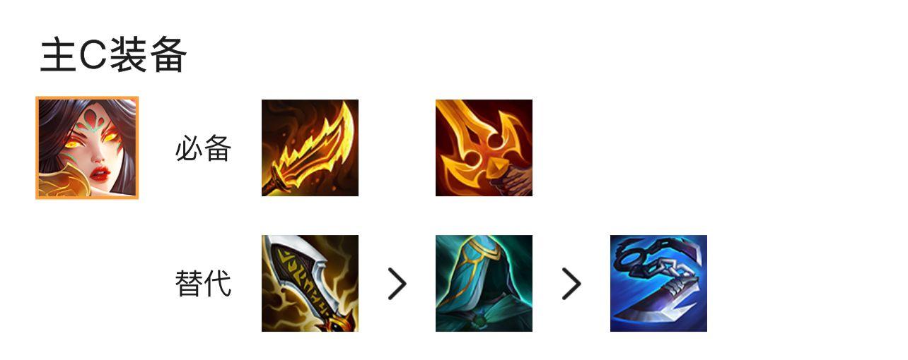 3、主C霞必备装备是鬼索的狂暴之刃、死亡之刃,替代装备是无尽之刃、水银、巨人杀手。