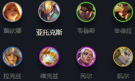 蕾欧娜、亚托克斯、韦鲁斯、辛德拉、拉克丝、维克兹、芮尔、凯尔