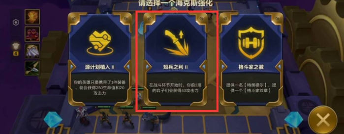 第二关中的海克斯玩家需要选择短兵之利就可以,可以更好的结合