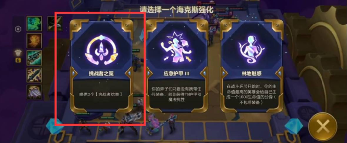 对于这一关的海克斯玩家需要选择挑战者之冕也就是第一个就可以