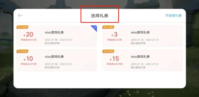 2.如果是vivo渠道服并且开通了vivo大会员之后,就可以在光遇购买东西的时候点击选择使用优惠券,需要注意的是有些优惠券需要在特定条件下使用的。