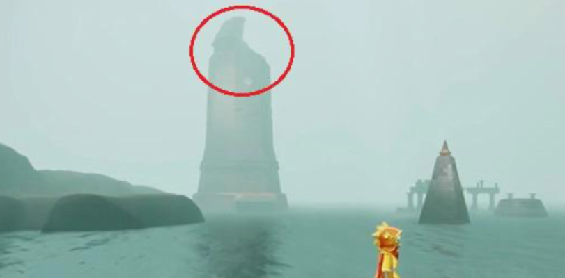 1.进入潜海季地图,第一个小金人就在高塔上;