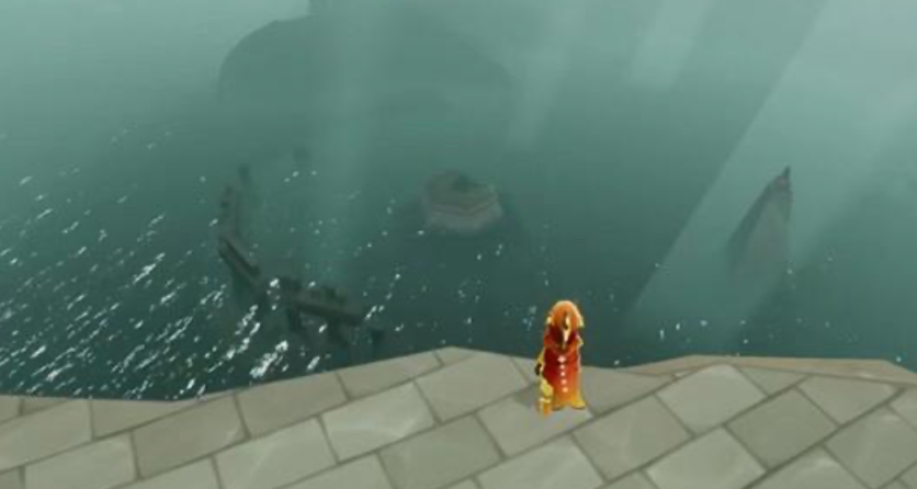 4.接着俯视海面上的洞穴,第二个小金人就在海底;