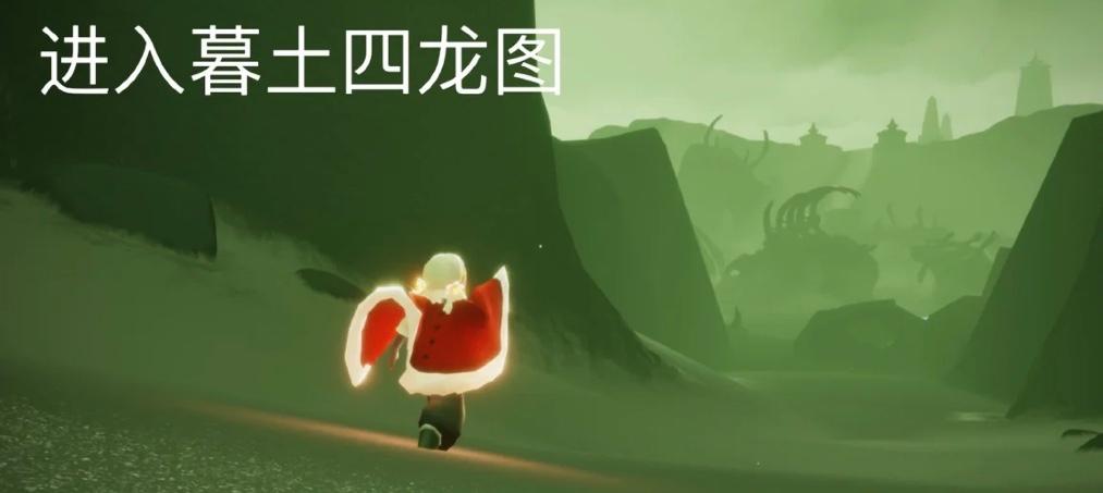 1、进入暮土地图中之后,一直向前飞,飞到墓土的第三张图四龙图,顺着滑道滑到最下面。
