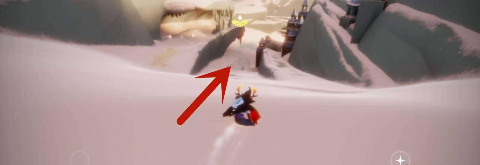 3.往半山腰飞过去。一路滑到溜冰场中央,往左边的半山腰飞过去。