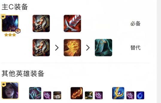 3.装备推荐:主c雷克塞装备必备泰坦和饮血剑,第三件优先泰坦,没有的话就正义之手或者水银;卡莎给鬼书,羊刀和大天使。
