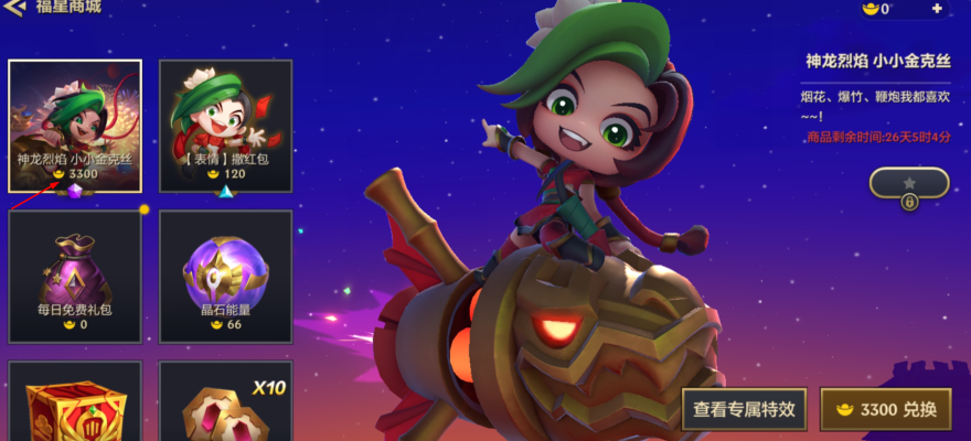 3,神龙烈焰金克斯不需要抽奖保底,只要我们在规定时间内集齐3300福星元宝即可兑换