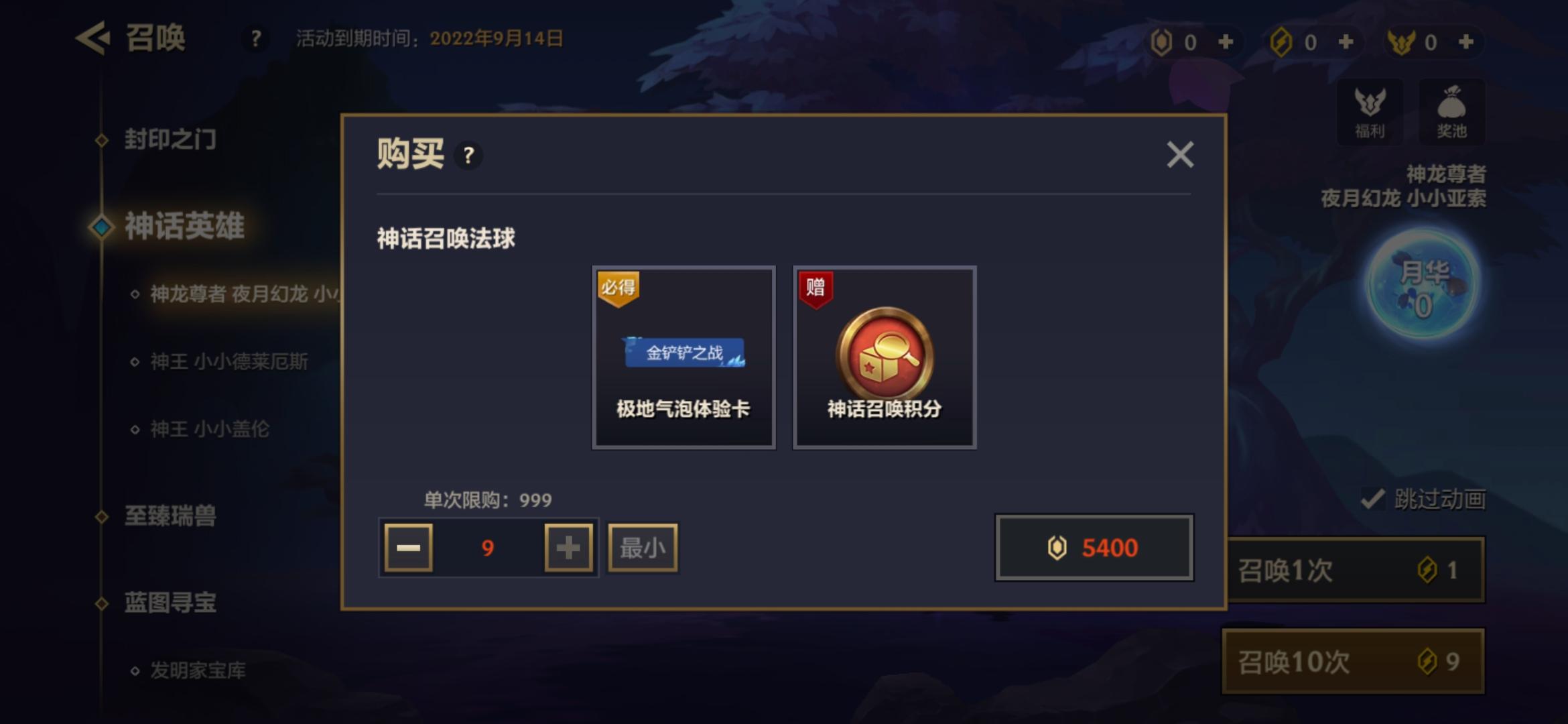 2、一次十连抽是54块钱,12次就是648元。所以最多话648元就可以获得了神龙尊者夜月幻龙小小亚索了。