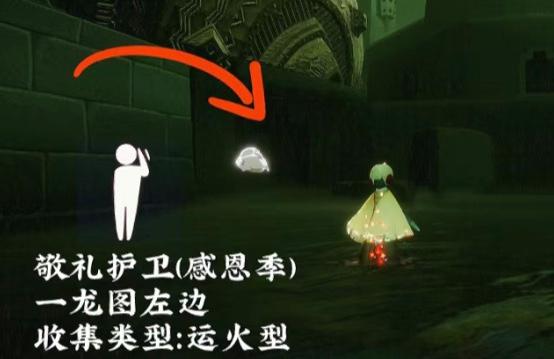 5、感恩季的敬礼护卫先祖,位置在墓土一龙图,冥龙出生的台子下面,动作是敬礼,可以跟这位先祖兑换白绒斗篷,收集方式是运火。