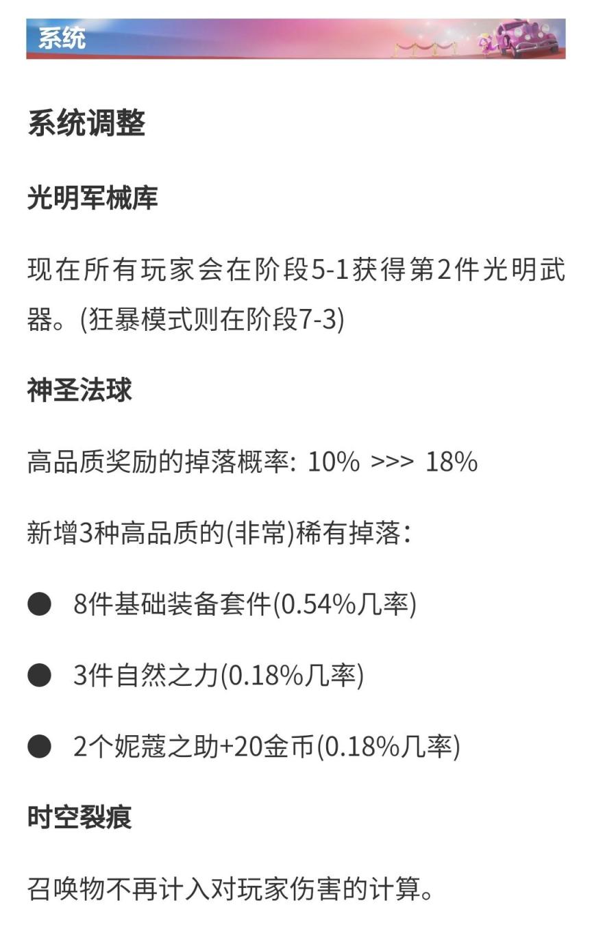 现在所有玩家会在阶段5-1获得第2件光明武器。(狂暴模式则在阶段7-3)