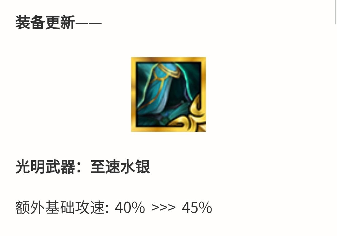 光明武器:至速水银:额外基础攻速: 40% >>> 45%