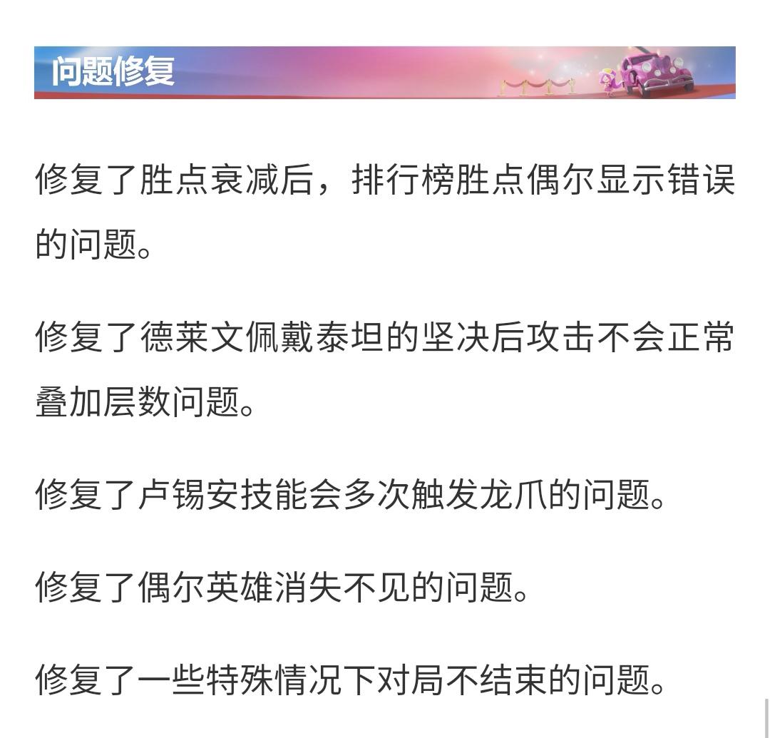 1、修复了胜点衰减后,排行榜胜点偶尔显示错误的问题。