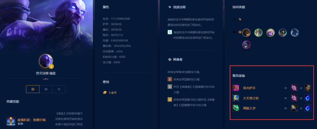 瑞兹的推荐装备是珠光护手、大天使之杖、朔极之矛。