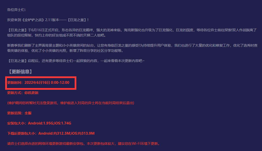 1、如下图所示金铲铲之战巨龙之巢是在2022年6月16日进行的更新。