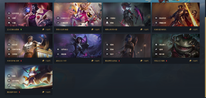 1、金铲铲之战中五费卡英雄有9位,分别是加里奥、维嘉、阿卡丽、维克托、杰斯、金克斯、卡沙、塔姆以及猫咪。