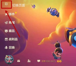 1.打开金铲铲之战游戏,在游戏主界面点击左上角如图红框处按钮切换页面。
