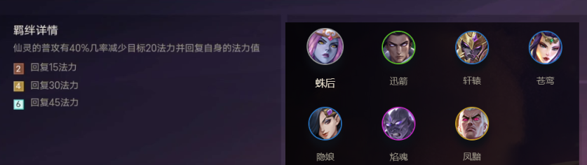 ②在降低敌方法力值的时候我方棋子还可以回蓝,如仙灵棋子中迅箭其法力值为0/75,正常无仙灵羁绊下需要普攻8次才能释放技能(一次普攻回复10点法力值),但如果在6仙灵羁绊下第一次普攻就触发了羁绊特效,就是直接回蓝45(仙灵羁绊回蓝) 10(普攻回蓝)=55法力值,还差20法力值就可释放技能,后面运气好第二次普攻也触发仙灵特效那么直接就可满蓝释放技能。