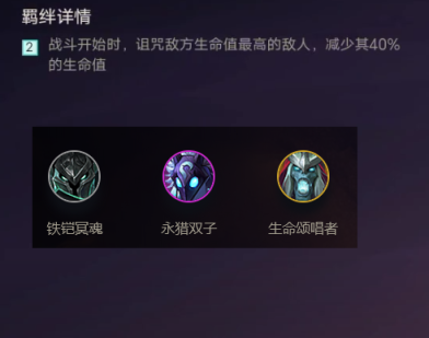 ①羁绊效果比较强势开局降低敌方1/2格内棋子攻速30%/5%,持续3/5秒,敌方攻速降低,变相增强我方攻速,能比敌方更快释放技能,另一方面可倒逼敌方分散站位,打乱敌方阵型。