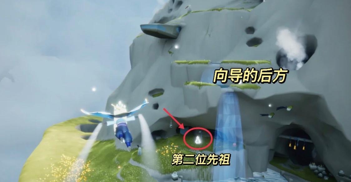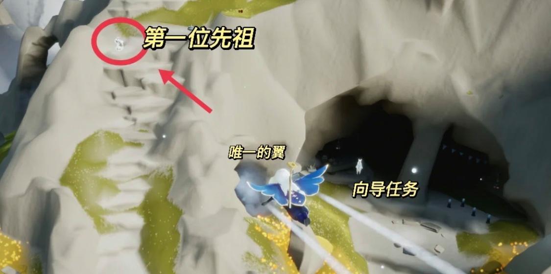 2、光之低语者先祖,是飞行季的叫声先祖,位置在风行季主岛屿中向导先祖的后方的山洞内。