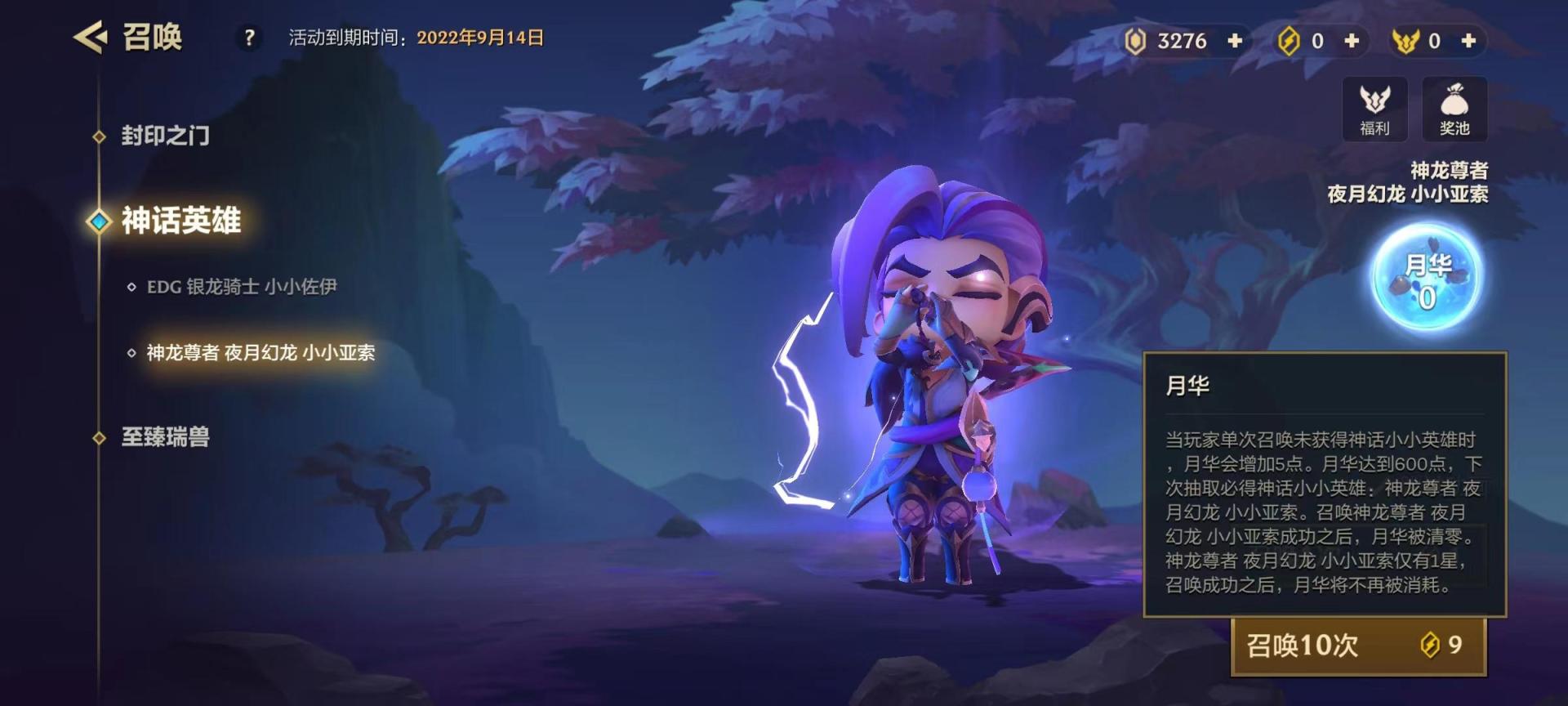 2、以夜月幻龙小小亚索为例,玩家每次抽取可以获得5点月华,累积600剑意必出英雄,也就是保底最多抽120次必出,折算下来保底价格为720元。