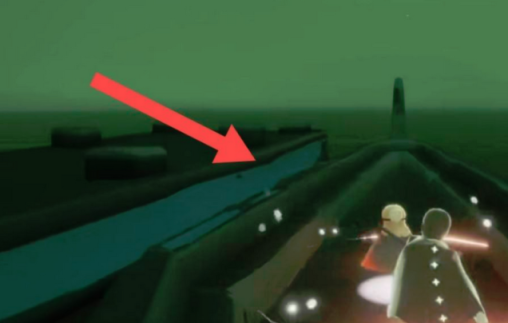 1、首先我们进入暮土地图以后坐着船往以往方舟方向飞。如下图所示: