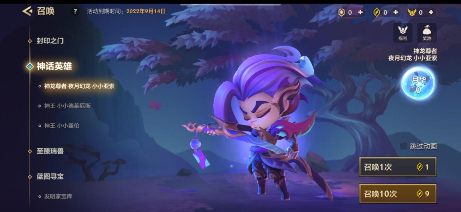神话英雄召唤获得小小英雄:神龙尊者 夜月幻龙 小小亚索