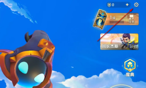 1、首先点击游戏主页上方的设置。