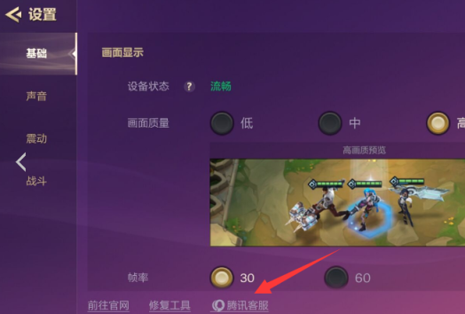2、然后在设置底部可以看到腾讯客服,点击进入。
