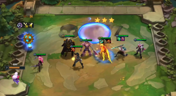 ②开局抢大剑,大棒。由于阵容都是低费卡,有肉装就直接给乌鸦。在3-2的时候升6人口,卡50利息D出男刀和小丑。
