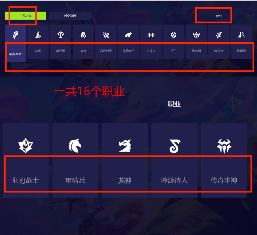 2.职业:职业有神龙尊者、法师、魔导师、刺客、迅捷射手、强袭炮手、格斗家、护卫、秘术师、唤星者、换形师、狂刃战士、重骑兵、龙神、吟游诗人、传奇半神一共16个职业。