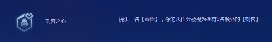 1、刺客之心海克斯的效果是:提供一名【泰隆】,你的队伍会被视为拥有1名额外的【刺客】。所以一定是玩刺客阵容或者刺客羁绊英雄主C的阵容了。