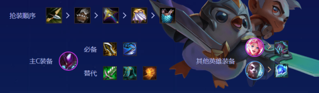 4、装备分析:螳螂神装巨人杀手、无尽之刃、水银系带,艾克带功能装,肉装给到薇,有装备的皮城执法官是非常的强的。优先找螳螂的装备,螳螂装备找完要找一本鬼书克制毒斗体系。
