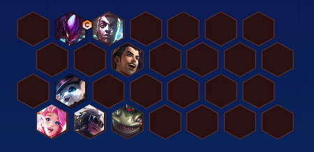 3、早期过渡:前期尽量用强势棋子与羁绊打工,保证打工棋子2星,进而稳定血量健康,步入7与8阶段,四海克斯(瑟庄妮、皇子、卢锡安、乌鸦)三发明(伊泽瑞尔、炼金术士、时光老头、机器人),或者保镖配合男刀双刺客都很强势。
