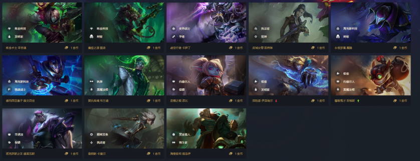 2、金铲铲一费英雄数量以及他们携带的羁绊。