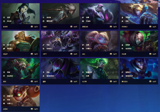 1、云顶之弈一费英雄的数量以及他们携带的羁绊。