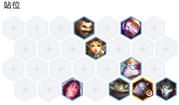 4、阵型站位:布隆机器顶前面。布隆打第一手控制承担主T的效果。机器人直接勾对方底角后排。塔姆站发条旁边保护发条吃对面突进刺客。发条站最后一排第二格防止被机器人勾。猫咪尽量牵塔姆或发条保一手C位。宝石位置尽量能吸引另一边突进刺客的仇恨。