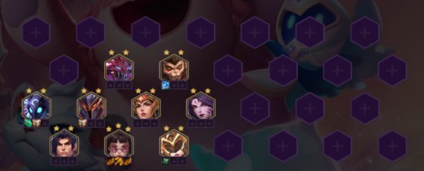 (5)拉到8级之后我们补上虚空恐惧来和齐天大圣作为搭配凑出双斗士羁绊,并且这两张棋子都有着不俗的控制效果,并且挂上星龙战神来凑出双护卫羁绊使我们整体阵容都有着不俗的防御能力。