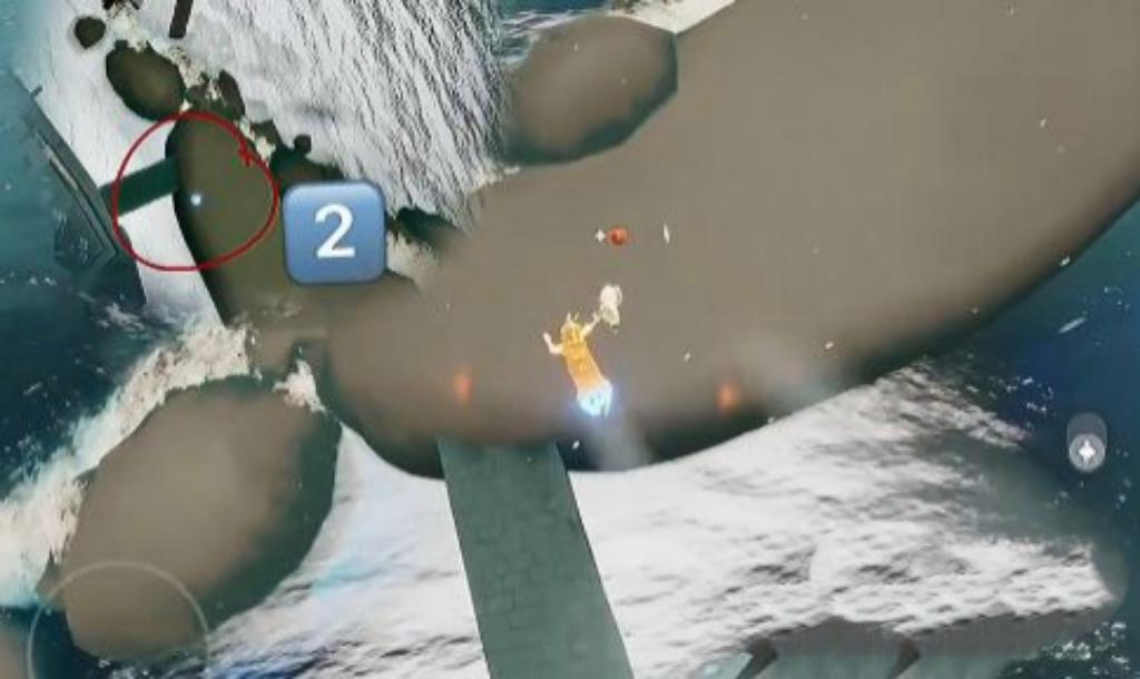 1、进入地图后,第一个先祖在船的后边岛屿上,在缝隙中可以看见先祖。