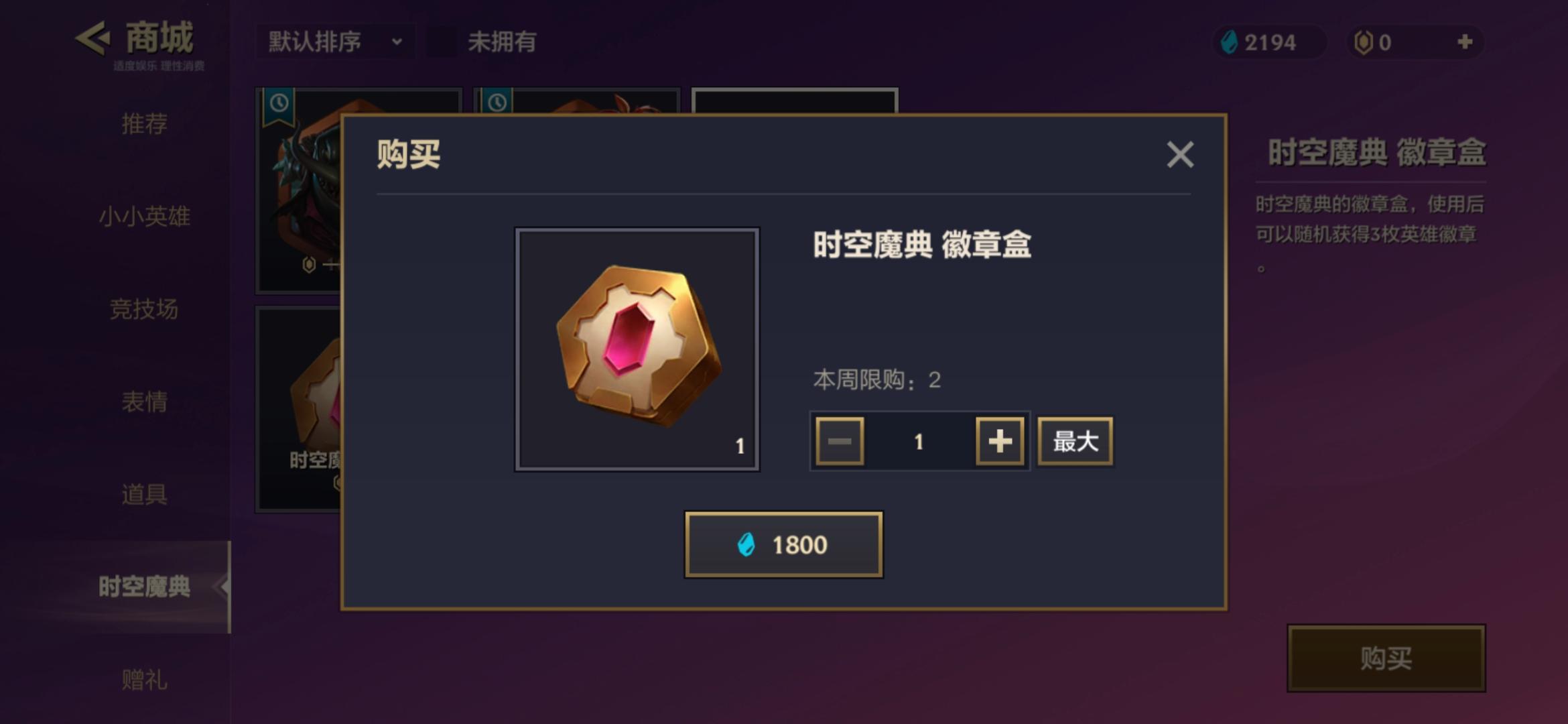 2、假设蓝色宝石够的话,每周可以3600百蓝色宝石购买两个,得到6个徽章。