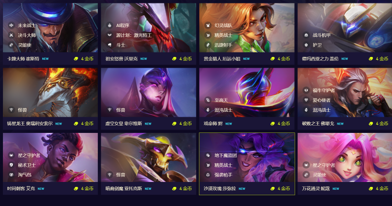 1.在金铲铲之战游戏当中,四费卡有13张,分别是卡牌,沃里克,女枪,盖伦,龙王,卑尔维斯,烬,佛耶戈,艾克,剑魔,莎弥拉,妮蔻。