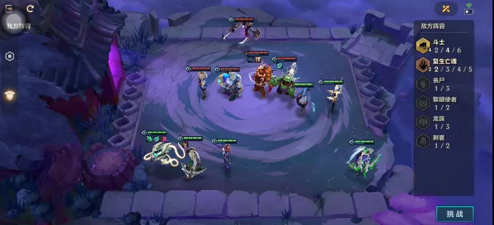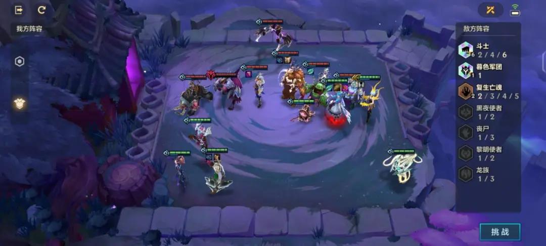 (1)第二关敌方4斗士2复生阵容,2星瑟提、2星古拉加斯、1星沃利贝尔、2星努努、2星魔腾。这局关键点敌方有控制能力极强的沃利贝尔,还携带鬼书,但让摩昂比较放心的是他只有1星。