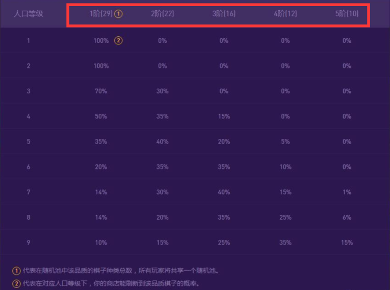 在金铲铲之战中,每个1阶棋子各有29张,每个2阶棋子各有22张,每个3阶棋子各有16张,每个4阶棋子各有12张,每个5阶棋子各有10张,如下图所示。