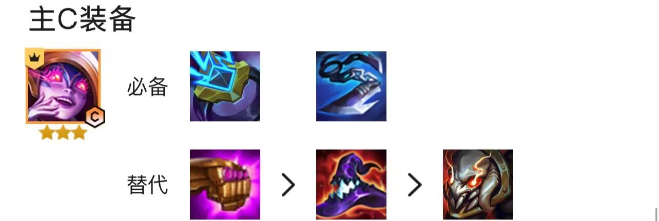 3、主C莉莉娅的必备装备是离子火花、巨杀,替代装备是珠光护手、帽子、泰坦的坚决。