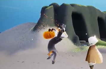1、进入光遇游戏,在遇境的位置出现了一堆黑色的南瓜堆,前往