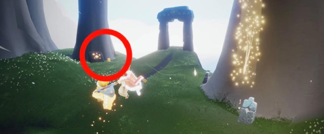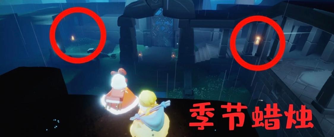 2、第二处分布在雨林季节蜡烛的位置,在雨林进图后穿过云洞后,前面的石头门的右下角石灯旁边。