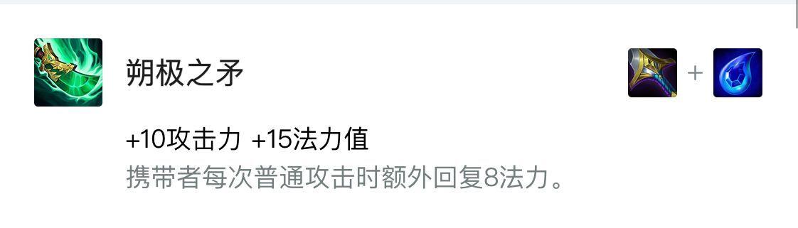 1、首选装备朔极之矛,又称“青龙刀”,起作用是在普通攻击是额外回复法力。配备该装备目的是尽量让黑默丁格尽早喷射火球。