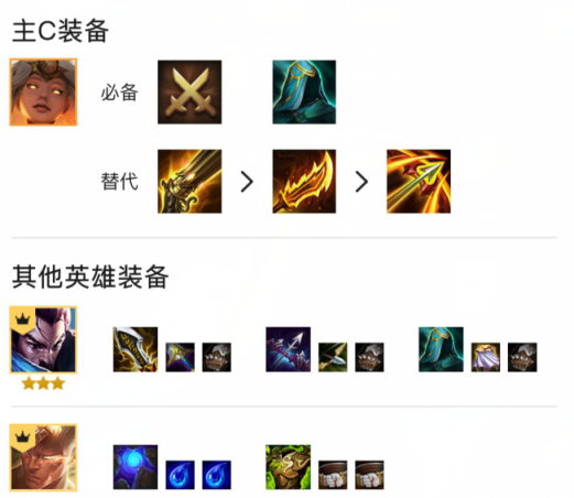 3.装备推荐:主c天使装备必备决斗大师纹章和水银,第三件优先火炮,没有的话就羊刀或者飓风;亚索给无尽,轻语和水银;李青给蓝霸符和狂徒。
