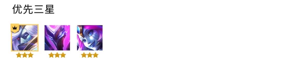 10.优先三星:该阵容前期挂的是星界龙羁绊,所以吸血鬼和娜美很好追三星,其次可以追一追蝎子和瑞兹都可上三星。