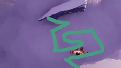 5、接着在对面的悬崖上就能够找到企鹅彩蛋了,参考路线见下图。