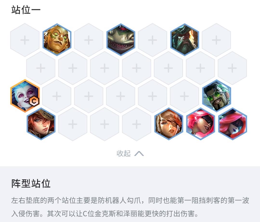 7.阵容站位一:俄洛伊,塔姆和船长站前排吸收伤害,厄运小姐和辛德拉分别占两个角落防钩和防刺客切C位。
